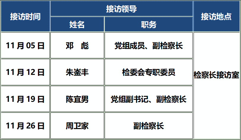 现将本院“检察长接访日”2025年11月接访安排公告如下: