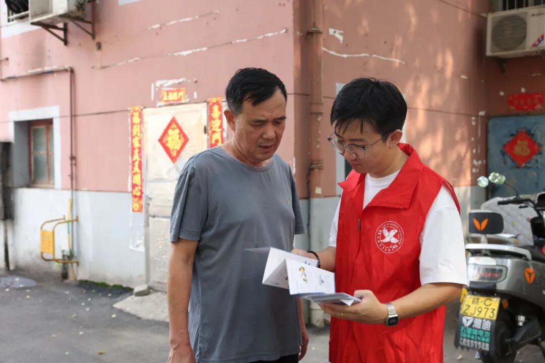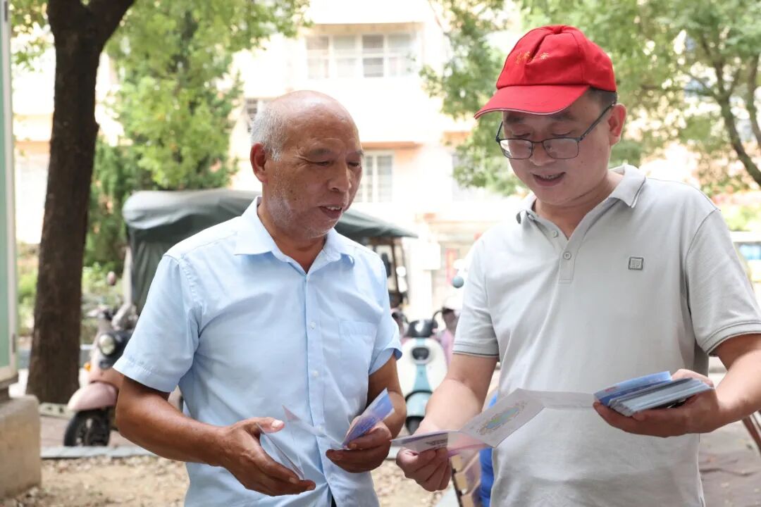 10月13日下午3点,党员干警们提前10分钟在关下社区门口集合签到,换上印有“志愿者服务”字样的红色马甲,精神饱满地开启宣传工作。大家迅速分散到社区广场、居民楼栋,化身“普法宣传员”与“安全引导员”,主动向居民递上宣传手册。