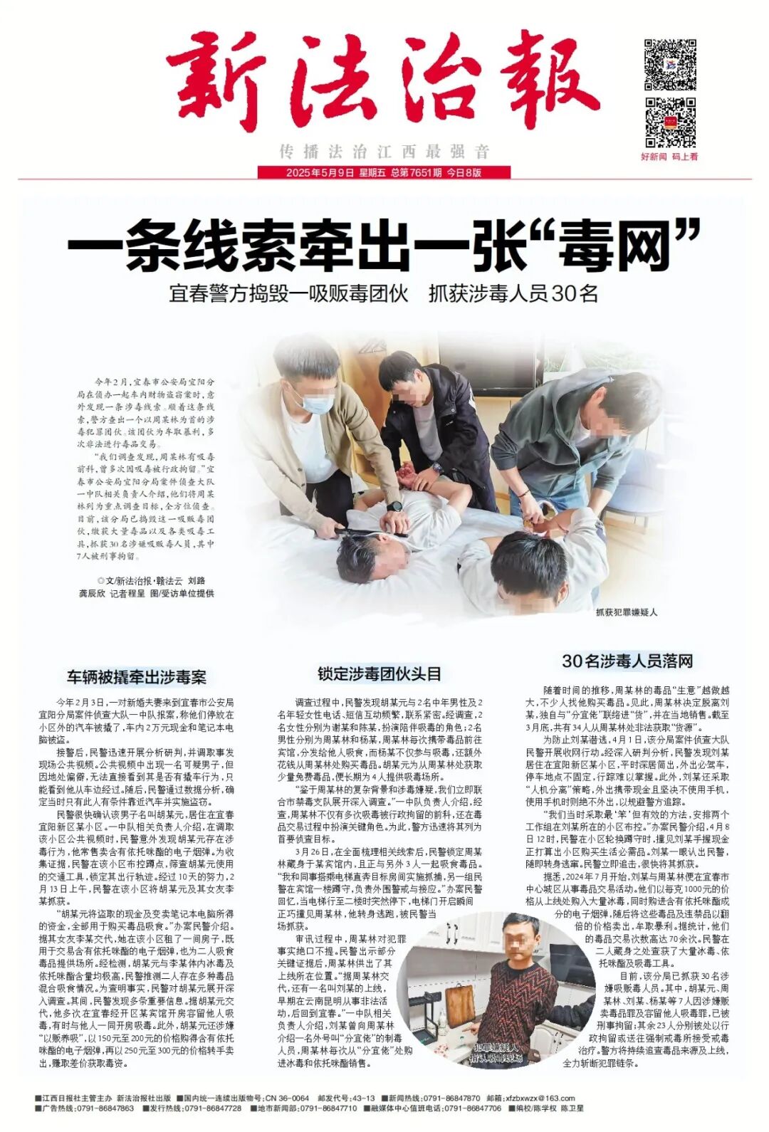 “我们调查发现,周某林有吸毒前科,曾多次因吸毒被行政拘留。”宜春市公安局宜阳分局案件侦查大队一中队相关负责人介绍,他们将周某林列为重点调查目标,全方位侦查。目前,该分局已打掉这一吸贩毒团伙,缴获大量毒品以及各类吸毒工具,抓获30名涉嫌吸贩毒人员,其中7人被刑事拘留。
