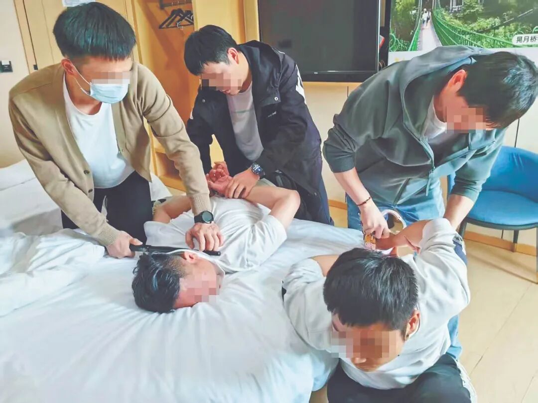 3月26日,在全面梳理相关线索后,民警锁定周某林藏身于某宾馆内,且正与另外3人一起吸食毒品。“我和同事搭乘电梯直奔目标房间实施抓捕,另一组民警在宾馆一楼蹲守,负责外围警戒与接应。”办案民警回忆,当电梯行至二楼时突然停下,电梯门开启瞬间正巧撞见周某林,他转身逃跑,被民警当场抓获。